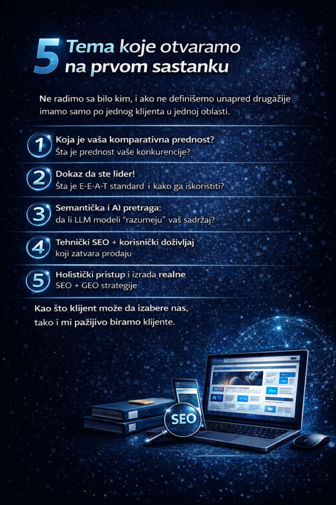 Teme koje otvaramo na prvom sastanku (SEO i AI kontekst 2026)